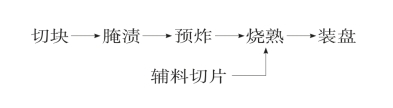 (1)切块腌渍:将梅鱼肉切成7厘米×3厘米的块,用酱油10克与绍酒腌渍5分钟。冬笋切成3厘米×2厘米×0.3厘米的片,香菇、荞头、青梅及洋桃皆切成片待用。