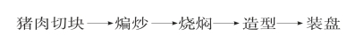 (1)预加工:将猪肉切成骨牌块,洗净下锅,加油50克,葱段、蜂蜜用中火煸至出油上色,烹入姜汁酒与大红浙醋稍煸,加水。白酱油、精盐、白糖、山楂片烧沸,焖1小时至猪肉酥烂时离火,山楂果拉油待用。