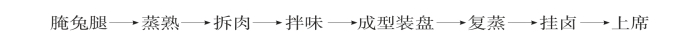 (1)预制急丝:①将花椒与盐8克炒烫起香,遍擦兔腿,撒绍酒腌渍约4小时,稍洗,入蒸笼约八成烂时取出,拆下兔肉,撒成细丝。②炒锅烧热下红油、芝麻油、芝麻与孜然粉炒香,下盐1克、味精3克、白糖、葱、姜、蒜茸与兔丝拌匀入味,待用。