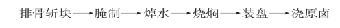 (1)斩块腌制:将猪排斩成约6.5厘米长的双连排块,用精盐拌匀入缸,腌12小时。