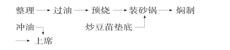 (2)预烧:①将鸡爪与翅中用5克酱油拌匀,鸽蛋滚沾干淀粉,分别投入200℃油中炸至起泡,色金黄时捞出。②用猪油将姜、葱、豆豉酱、油咖喱、油辣子煸香,下爪,翅中。加绍酒、白糖、酱油、盐与肉汤,淹平爪,翅烧沸,移小火焖至酥烂,换中火略收稠汤汁。