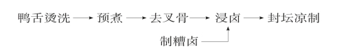 (3)糟坛:将糟卤灌入砂坛,浸入鸭舌,用锡纸封住坛口,放入10℃室温下冷置12小时上席即成。