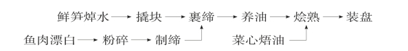 (1)笋块处理:将笋尖焯透水,用撬刀法,撬出劈材块,撒干淀粉拌匀。