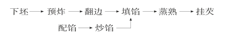 (2)制馅:将瘦猪肉、香菇、虾米、韭菜与多余的水豆腐均切成粒。用50克猪油将猪肉末煸香煸散,再陆续下豆腐粒、虾米粒、香菇粒翻炒均匀,下酱油50克、精盐3克、味精1克、肉汤50克调味,用淀粉勾芡装碗晾凉后,拌入韭菜粒即为馅心。