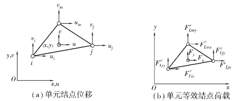 本节以3结点三角形为例,介绍单元分析的基本过程,主要包含单元位移模式设置、插值函数的构造,以及形函数、几何矩阵、单元刚度矩阵的推导,单元等效结点荷载计算等。