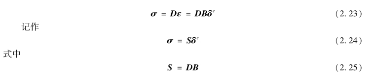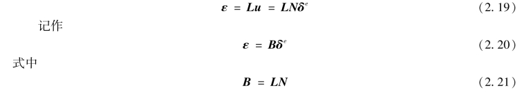 称为几何矩阵。式(2.20)为由结点位移δe表示应变ε的转换式。