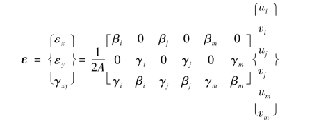 可见,对于3结点三角形单元,B的元素是与单元的几何性质有关的常量,即B为常数阵,因此,3结点三角形单元通常称作常应变单元(CST)。