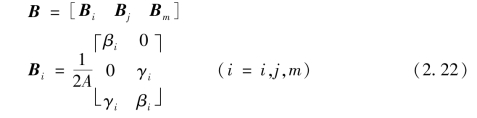 对于3结点三角形单元,由式(2.11)、式(2.13)可得