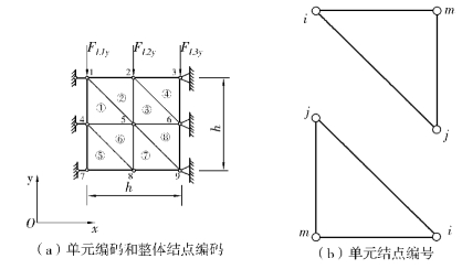 图2.13给出了结构离散计算模型的单元编码和整体结点编码。