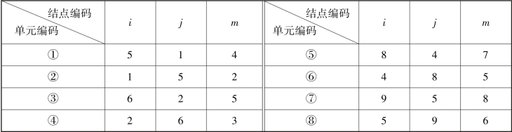表2.1给出单元结点编码(局部编码)和整体结点编码之间的对应关系。