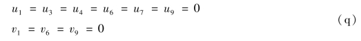 考察方程组(r)第7式,可以得到u4=0的结果。对式(q)中其他位移边界条件均做类似处理,即可满足全部位移边界条件。