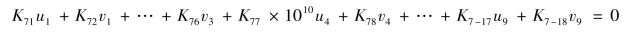 由于上式中其他元素比之于主元素K77×1015皆为高阶微量,可以略去。因此,上式仍然可以得到u4=0的结果。