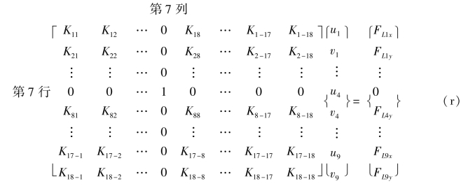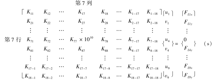 仍以式(q)的边界条件中u4=0为例,对整体刚度矩阵K和整体荷载列阵FL作如下修改