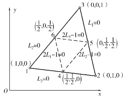 如图3.3所示为6结点三角形平面单元,除三角形角点以外,3条边的中点各设置一个结点。
