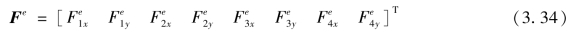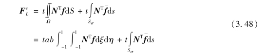 例如,对于重力问题(设容重为ρg),代入式(3.48),单元等效结点荷载列阵为: