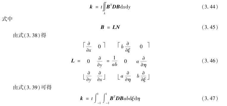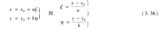 根据矩形单元边界的几何特性,为便于运算,引入无量纲局部坐标系(ξη),如图3.7所示。