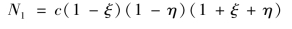 参照Pascal三角形,首先选择完全二次项:1,x,y,x2,xy,y2,有6个待定参数。其次,应在3次及以上项中选择2项。单元在边界上各包含3个结点,考虑到收敛性以及坐标对称性,位移函数在边界上x或y的最高幂次应为2次,故选择x2y,y2x两项。显然,如此选择位移模式能够满足连续性要求。