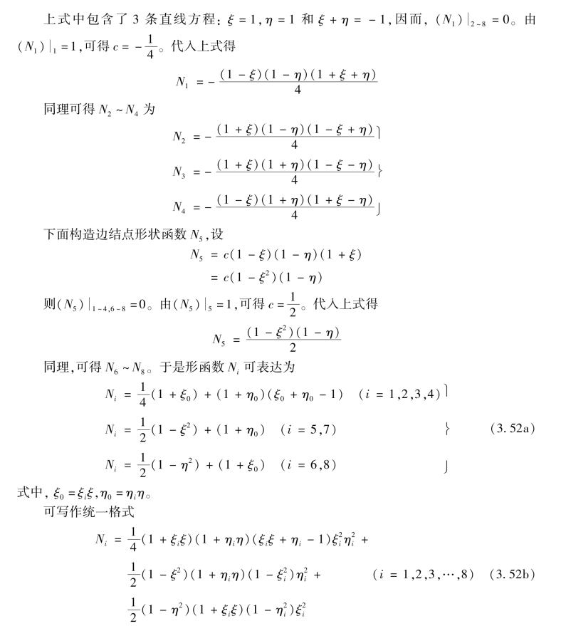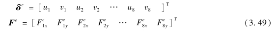 图3.9为8结点矩形单元,在4个角点和各边中点设置结点,单元有16个自由度。单元结点位移列阵和单元结点力列阵分别为