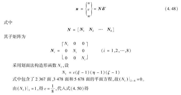 这表明在变形过程中,u保持为平面,而该平面方程可由4个结点1,2,5,6唯一确定。因此可以说明,在变形过程中,六面体单元各个边界面与相邻单元保持变形协调。