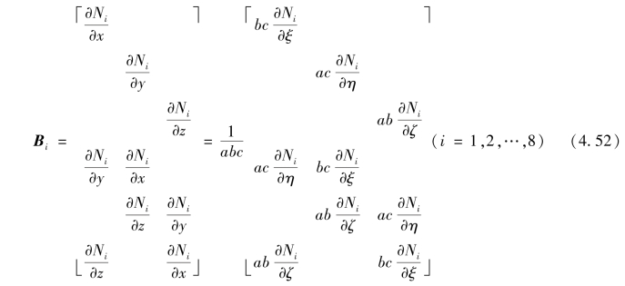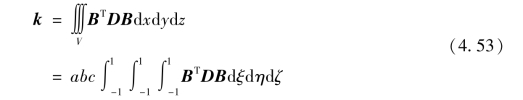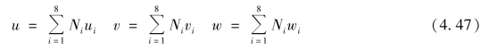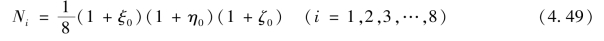 如图4.8所示,任意边长为2a×2b×2c的六面体单元,选取8个角结点。