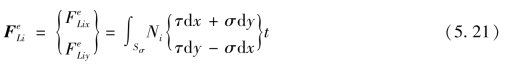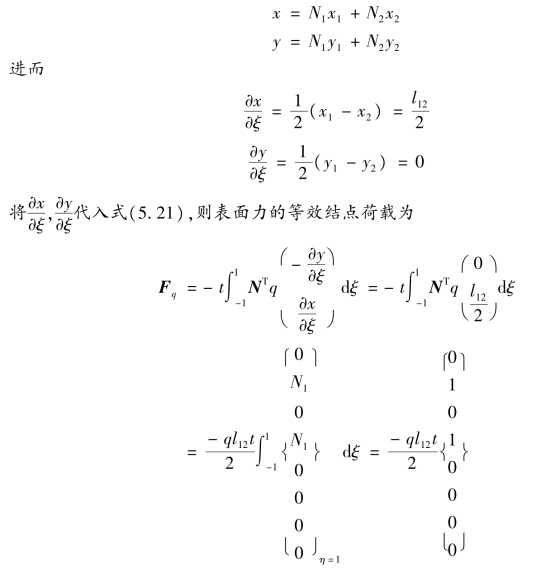 将式(g)、式(h)带入式(5.20),则可得到单元表面力的等效结点荷载