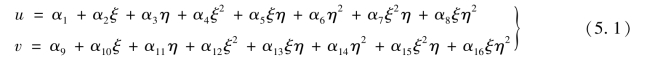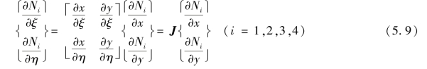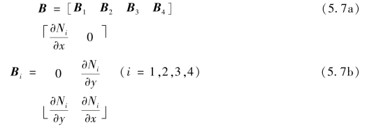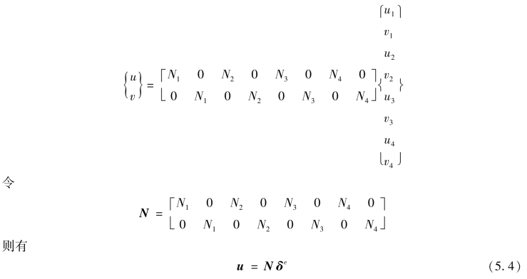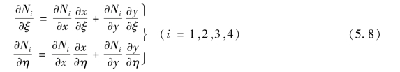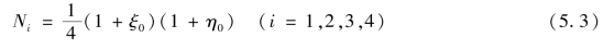 式中 Ni(ξ,η)——位移插值函数中的形函数,由(5.3)表示。