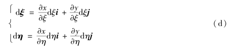 设i,j分别为整体坐标x,y方向的单位向量,dξ,dη分别为局部坐标ξ,η在整体坐标系下的微元向量,可表示为