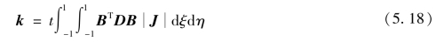 式(5.18)的被积函数是局部坐标(ξη)的函数,难以得到显式表达。所以,等参单元刚度矩阵的积分计算一般采用数值积分计算。