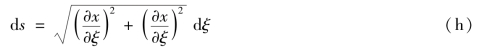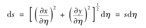 对于式(5.20)中面积微元ds,例如在ξ=c(常数)的曲线上,dη在整体坐标内的线段微元的长度为