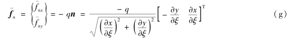 由于表面力q所在的边对应于η=1的边界,设n为该边界外法线n在整体坐标系的方向向量为外法线表面力在整体坐标系的向量,则