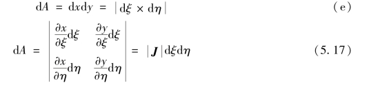 式(5.16)中,被积函数是局部坐标ξ和η的函数,应对积分元进行变换。