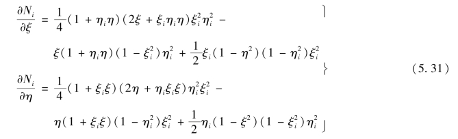 由于形函数Ni为局部坐标ξ,η的函数,由上一节分析,参照式(5.12)可知