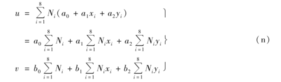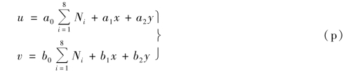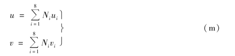 式中,Ni(ξ,η)为形函数,参照式(3.52),可取为