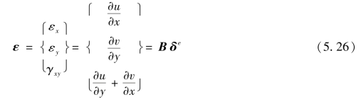 将式(5.23)代入平面问题的几何方程,得到单元的应变