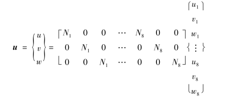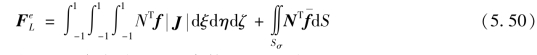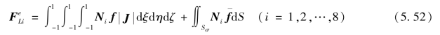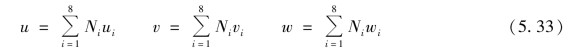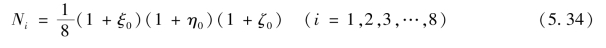式中Ni(ξ,η)为形函数,参照式(4.52)由式(5.34)给出