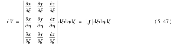 从图5.9可以看到,dξ,dη,dζ在整体坐标系内所形成的体积微元为