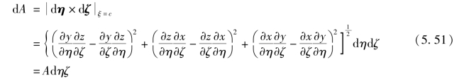 对于式(5.49)中面积微元dS,例如在ξ=c(常数)的面上有