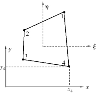 【例5.4】 如图5.11所示4结点四边形等参元,计算有限单元刚度矩阵所需的表达式。