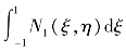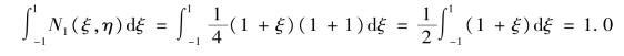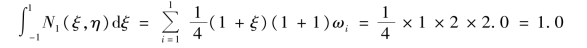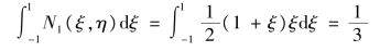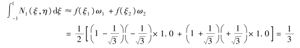 【例5.3】 设N1=(1+ξ)(1+η)(ξ+η-1),采用高斯积分法计算