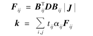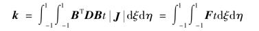 其中,tij是单元在采样点(ξi,ηj)处的厚度(在平面应变分析中tij=1.0)。在给定矩阵Fij和加权因子αij可用的情况下,能方便地计算所需的刚度矩阵。