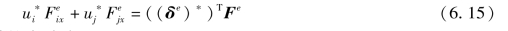 因为虚应变是任意的,所以,为使上式成立,等式两边与((δe)*)T相乘的部分应该相等,即