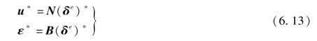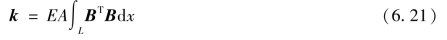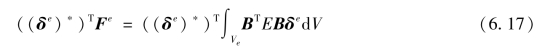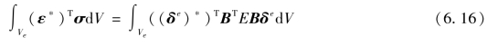 其中,N和B分别为形函数矩阵和应变矩阵,分别见式(6.6)和式(6.9)。
