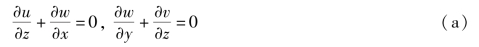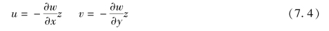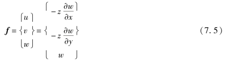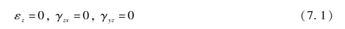 需要说明的是,在上述计算假定中虽然采用了εz=0,γzx=0,γyz=0,但在考虑平衡条件时,仍然必须计入3个次要的应力分量τxz,τyz和σz。事实上,在薄板的小挠度弯曲理论中,3个次要的应力分量τxz,τyz和σz可利用平衡方程由3个主要的应力分量σx,σy,τxy推导而得。