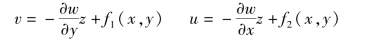 将式(c)代入,得f1(x,y)=0,f2(x,y)=0。于是纵向位移表示为