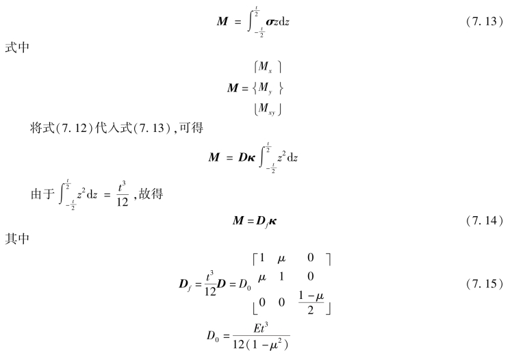 式(7.14)表明了薄板内力M与薄板变形κ之间关系。