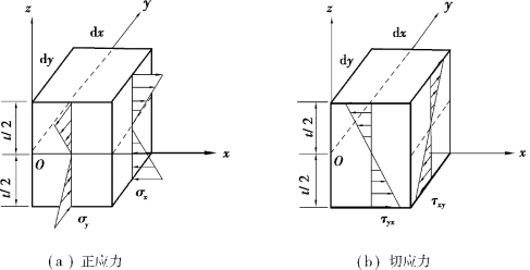 图7.2表示在板内任意点所取微元体dx dy的应力分布情况。