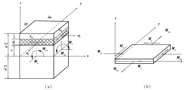 从图7.2(b)可看出,由剪应力τxy和τyx分别组成扭矩Mxy和Myx。