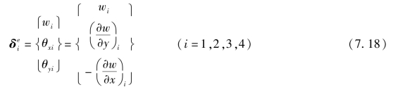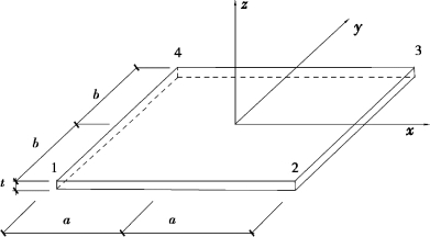 图7.5为薄板的一个尺寸为2a×2b×t的矩形单元。坐标系原点取在矩形的中心O。取4个角点为结点,局部编码为1,2,3,4。
