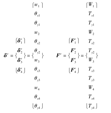 单元结点位移向量δe和单元结点力向量Fe分别为