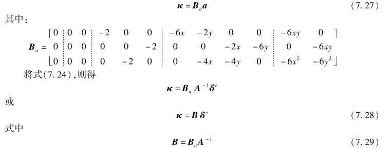 式(7.28)为由结点位移δe求弯扭变形κ的转换式。